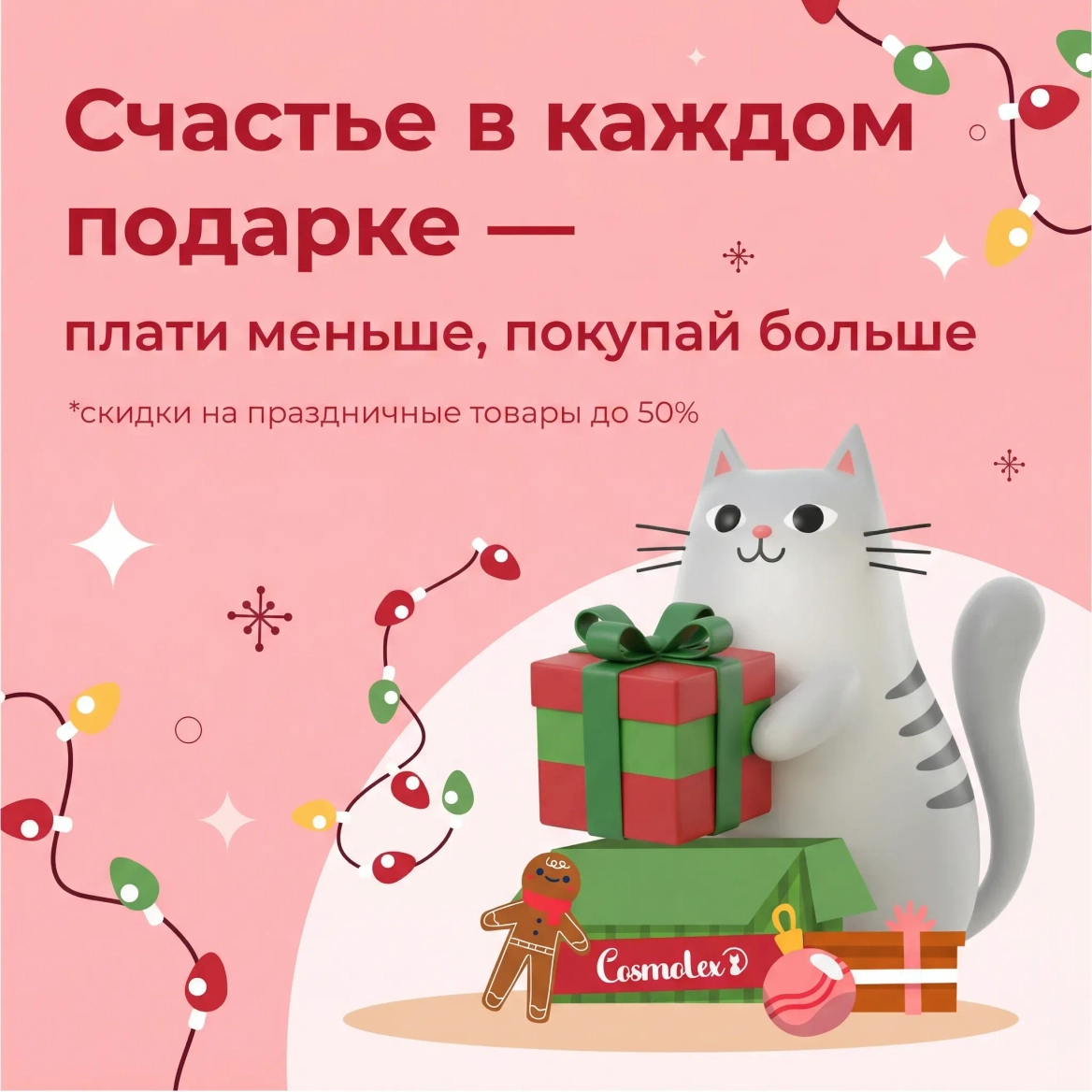 Праздничное настроение уже на пороге, и мы готовы усилить его еще больше. Подарки не только покупают в Cosmolex, но и дарят их!