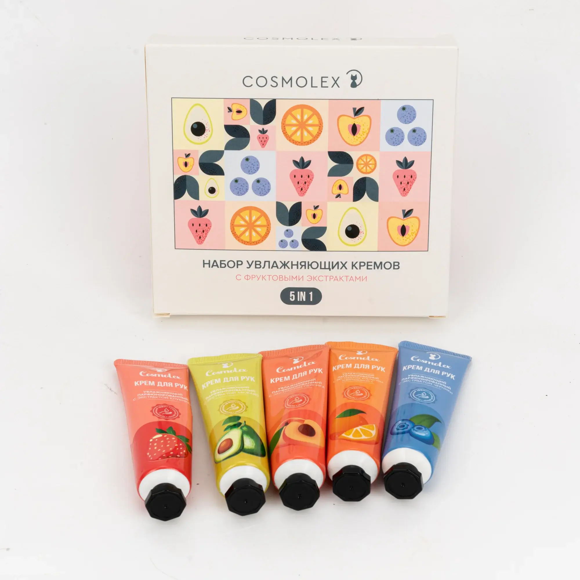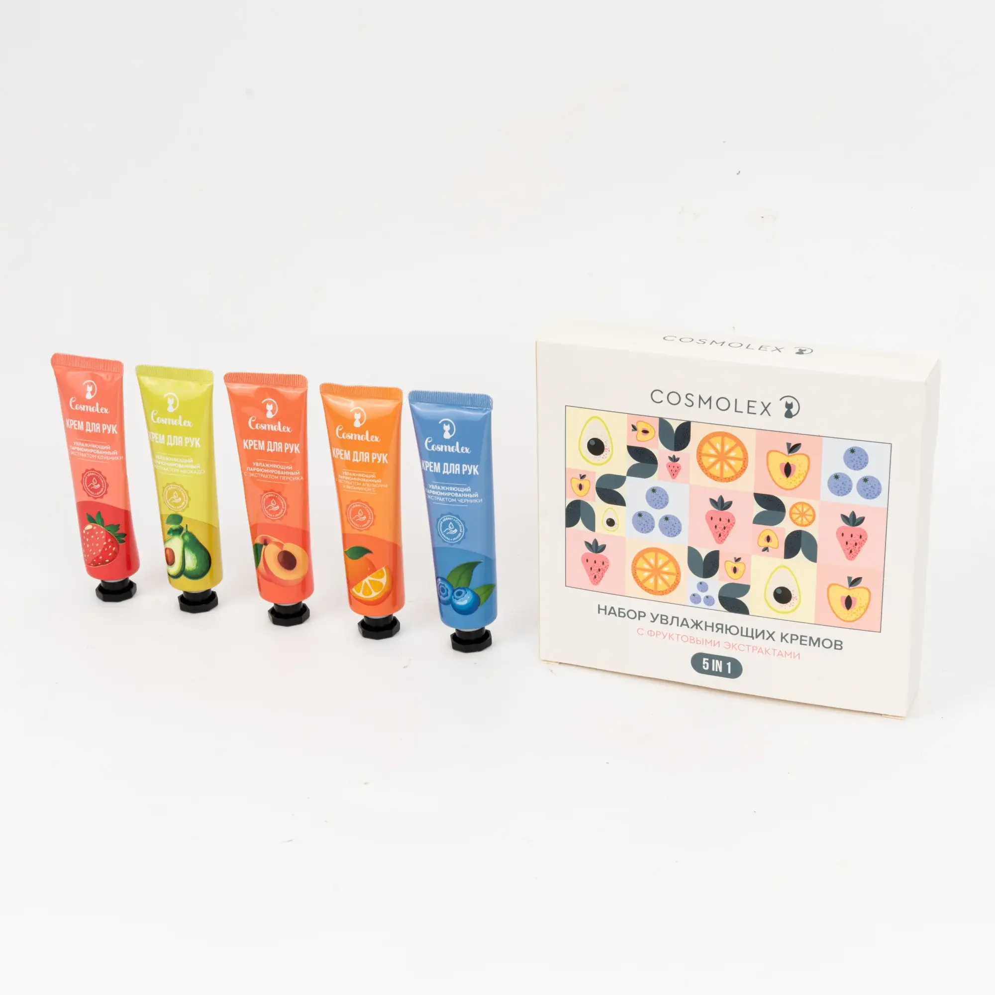 Набор парфюмированных кремов для рук Cosmolex — уход за кожей, который подстраивается под ваше настроение. В наборе 5 штук увлажняющих кремов с ароматным коктейлем из ягод и фруктов. Можно использовать в любое время года. В жаркий сезон станет эффективной защитой от сухости, а зимой сохранит кожу мягкой, несмотря на морозы. Вы заметите мгновенный результат с первого применения: кожа остается напитанной и красивой в течение всего дня.