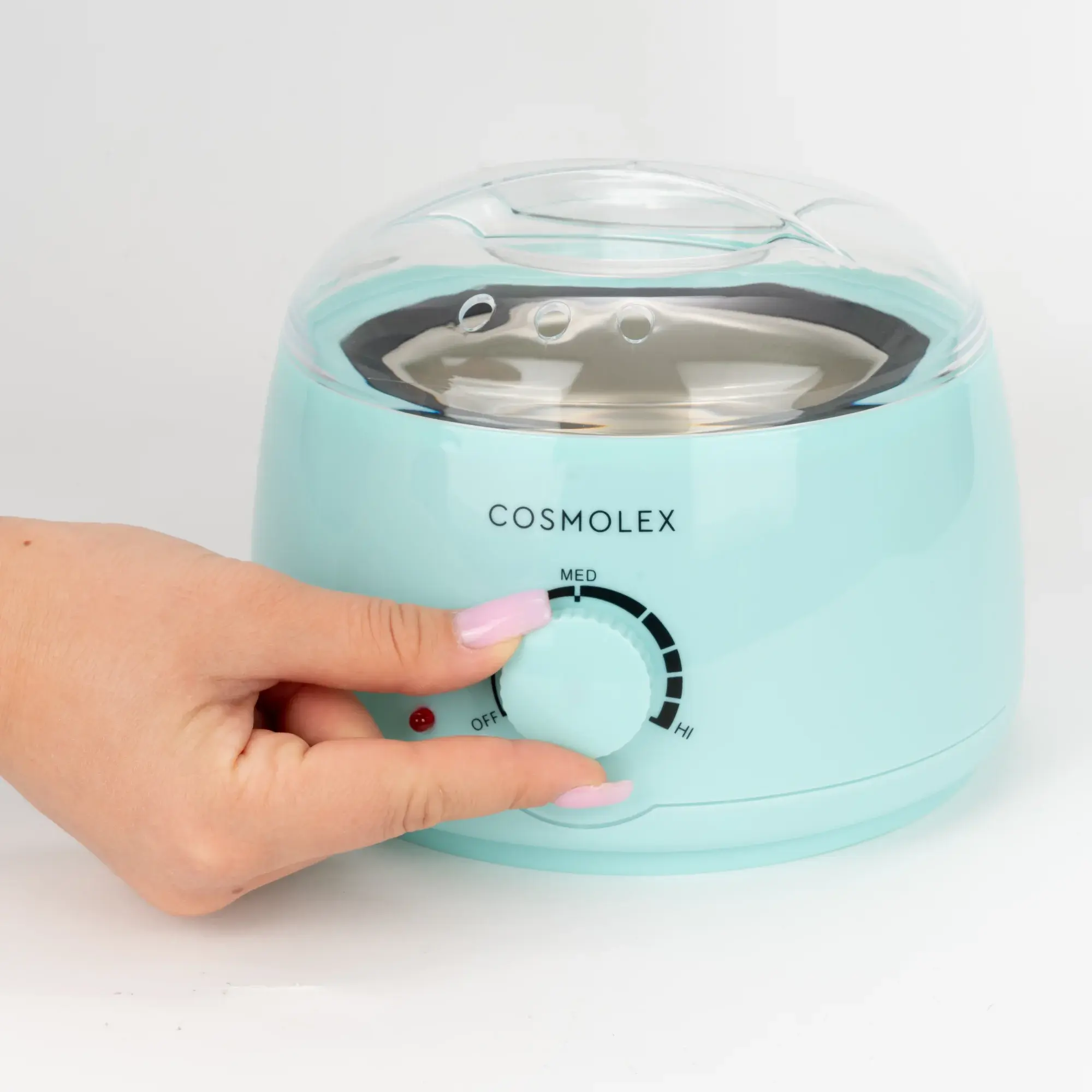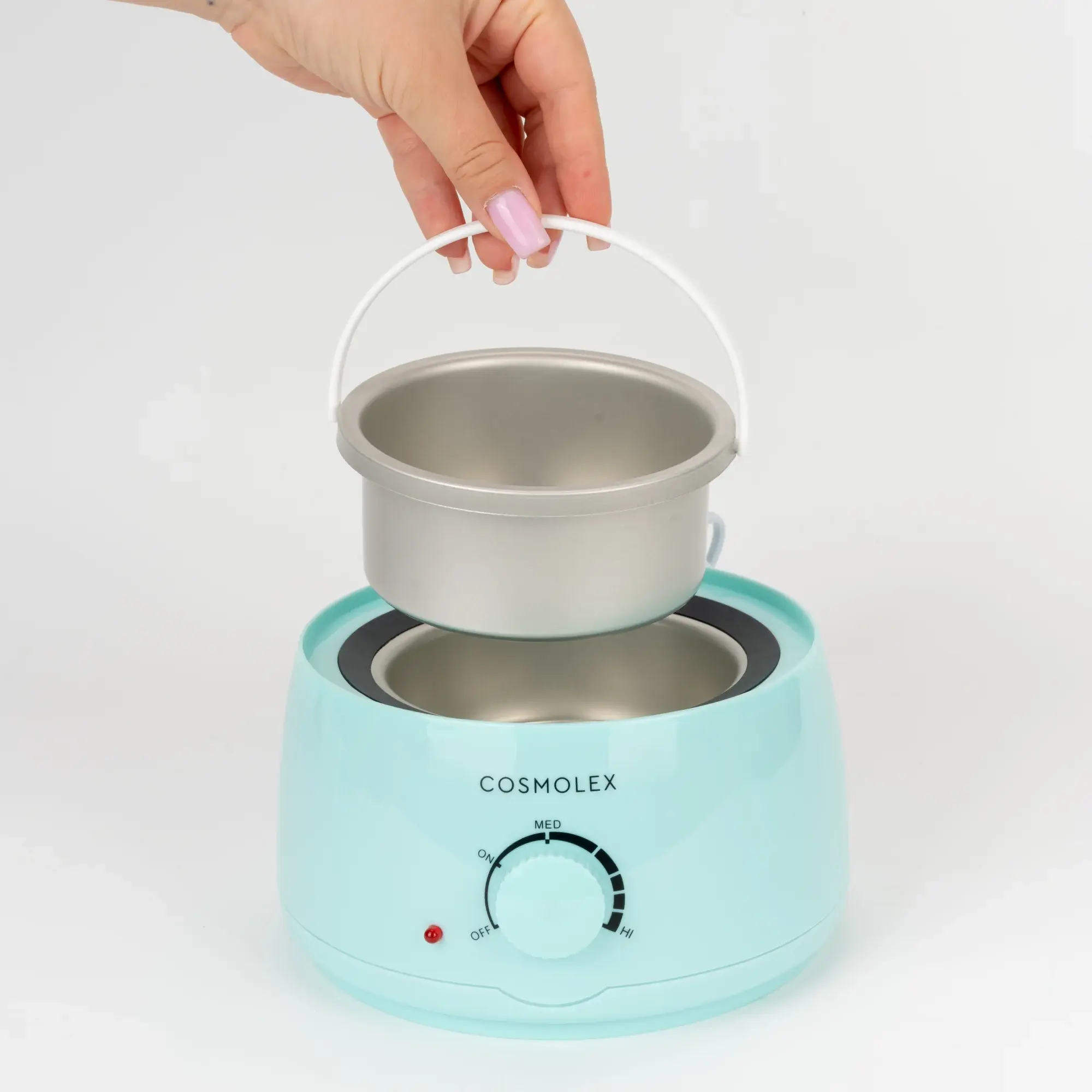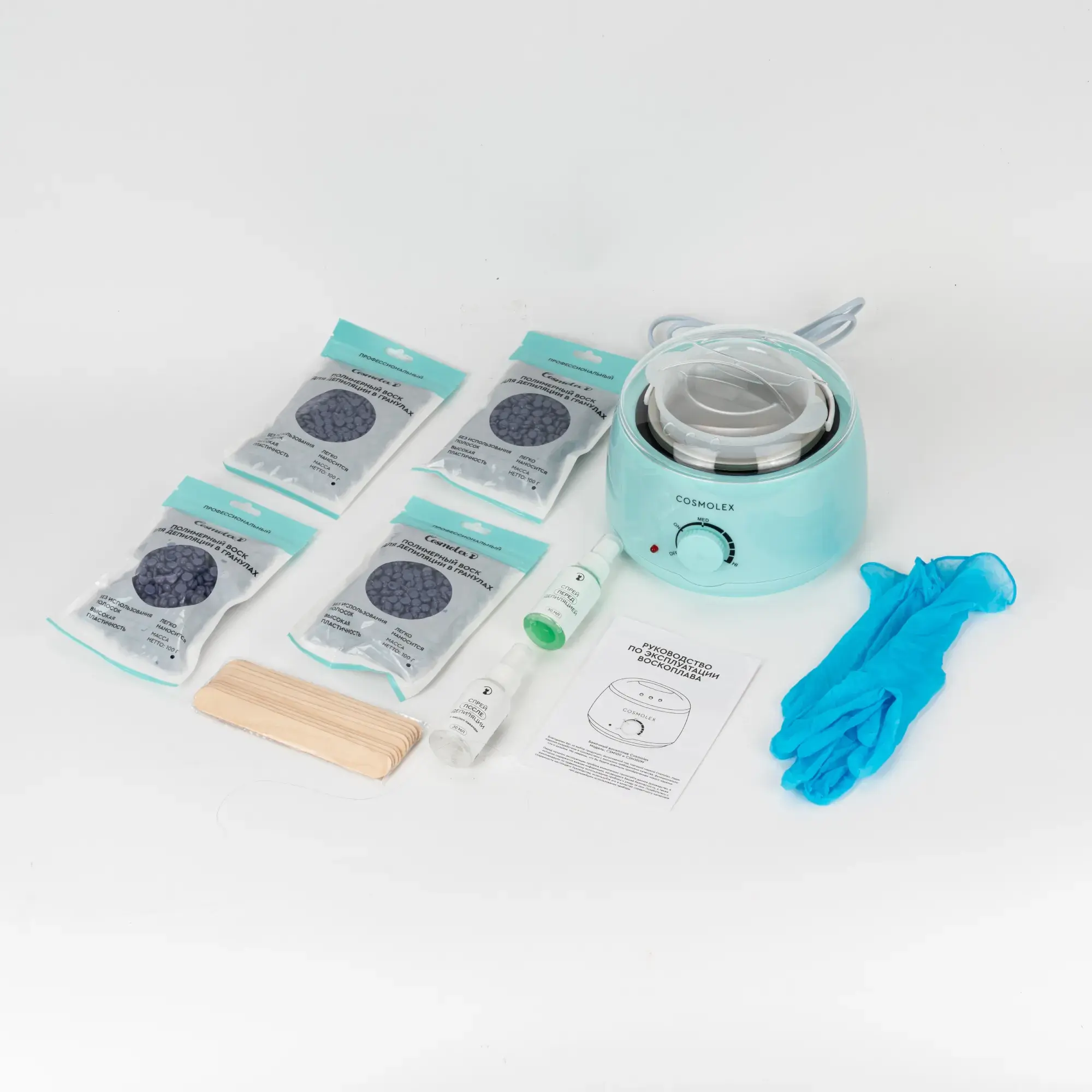 В набор входит профессиональный воскоплав баночный Cosmolex объемом 400 мл, оснащенный электрическим нагревателем, который обеспечивает быстрый и равномерный разогрева воска.