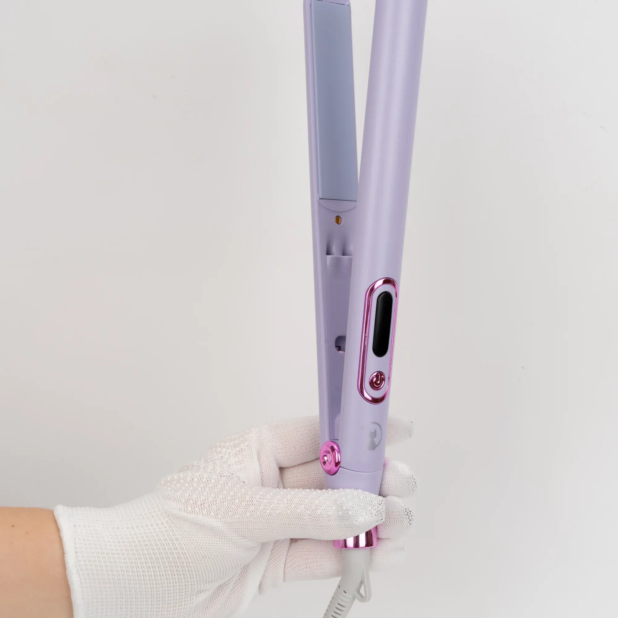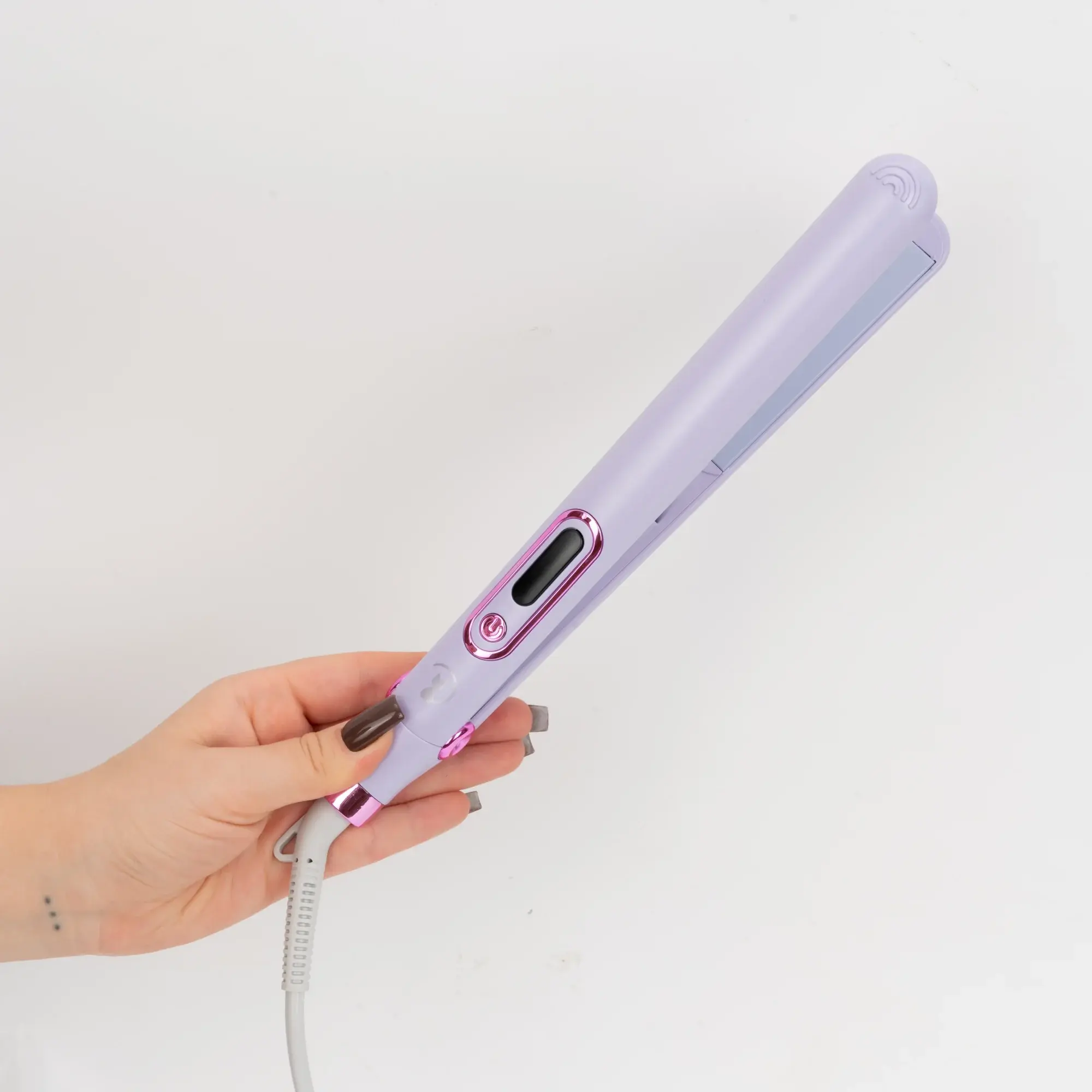 Стильный утюжок профессионально и качественно разглаживает каждый волосок, придает прическе гладкость и блеск.. Этот многофункциональный стайлер незаменим в создании идеальной укладки — будь то гладкие прямые волосы, игривые кудри или объем. Устройство оснащено LED-дисплеем, который отображает текущую температуру и позволяет легко контролировать настройки.